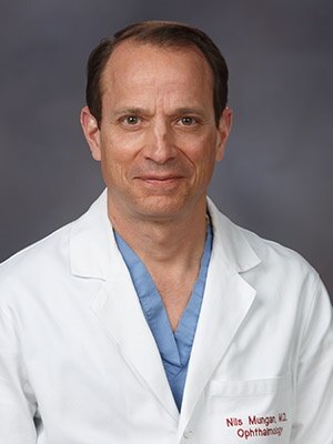 Nils Mungan, M.D., Professor, is a board-certified Ophthalmologist specializing in Pediatric Ophthalmology. Dr. Mungan was born in Calgary, Canada and attended medical school at the University of Ottawa followed by residency in Ophthalmology at the Ochsner Foundation Hospital in New Orleans. After completing his fellowship in Pediatric Ophthalmology at the University of Toronto, Dr. Mungan began his practice at UMMC in 1999. During his career at UMMC, Dr. Mungan has been recognized with many awards including the AAPOS Honor Award from the American Association for Pediatric Ophthalmology & Strabismus. Dr. Mungan has written a textbook chapter on esotropia (crossed eyes), has authored or co-authored numerous medical journal articles, and serves as an investigator on multiple nationally sponsored research studies. Dr. Mungan is a member of the editorial board of the Journal of Pediatric Ophthalmology & Strabismus. He has also served on multiple national and international committees for pediatric ophthalmology and has been the organizer of several international symposia. Over his tenure at UMMC, Dr. Mungan has helped train in excess of 70 new ophthalmologists. Dr. Mungan has four children and enjoys half-marathon racing, skiing, canyoneering, camping, reading, electronics and was very active in Boy Scouts. Dr. Mungan speaks English and French fluently.
